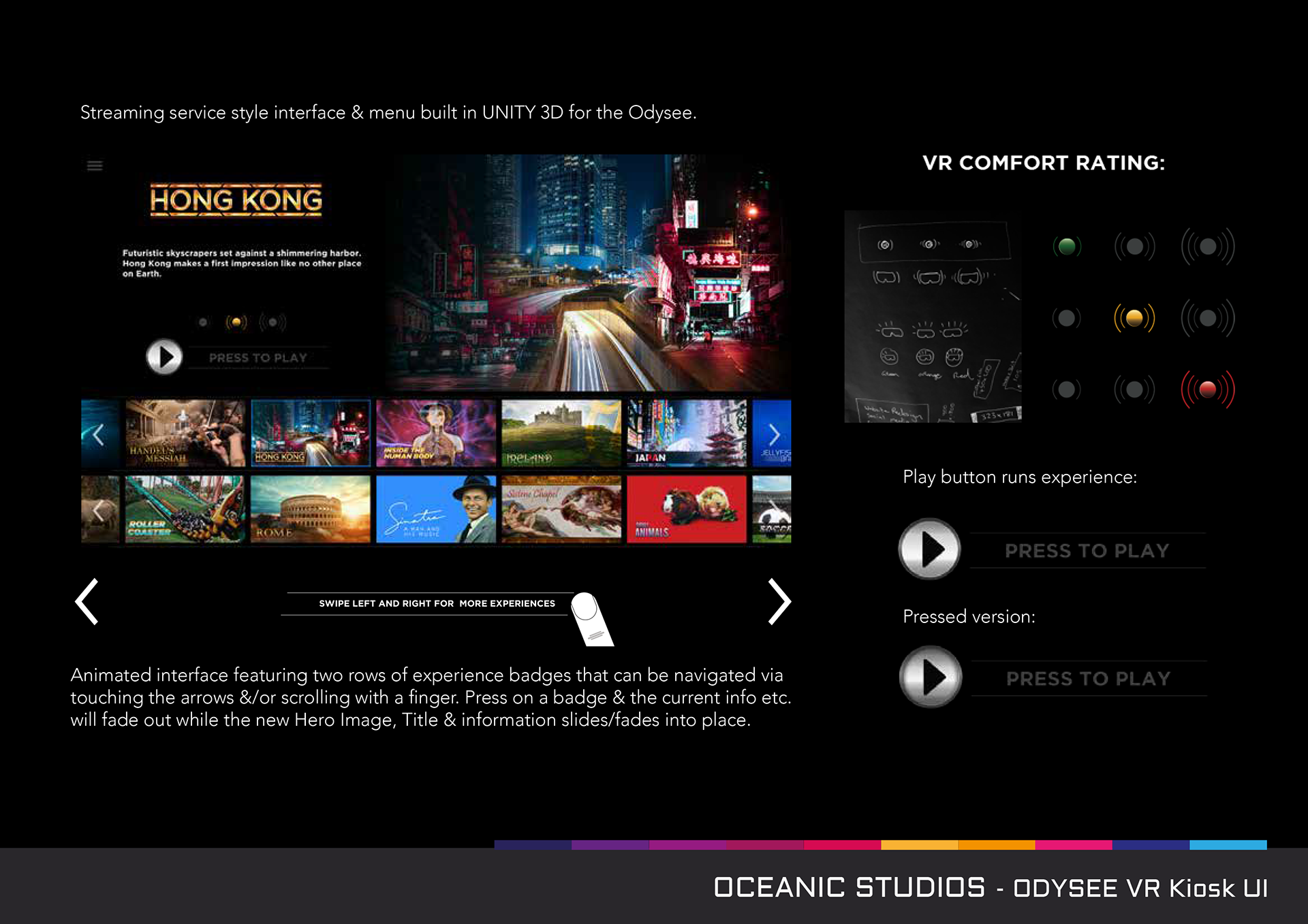 UX/UI Design for the Odysee standalone virtual reality kiosk.